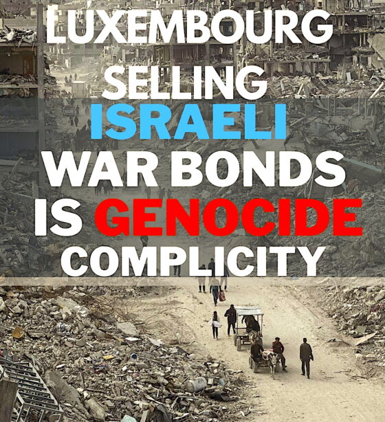 Suite à une forte pression publique, l’Irlande a cessé d’héberger les obligations de guerre d’Israël. Pourtant, le Luxembourg est intervenu, permettant à Israël de continuer à lever des fonds pour l’anéantissement des Palestiniens, malgré les conclusions de la Commission d’enquête des Nations Unies concluant à un génocide israélien et les mesures ordonnées par la Cour internationale de Justice pour l’empêcher.